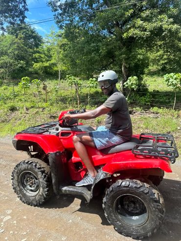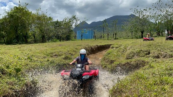 Explore the back country roads of Costa Rica while splashing through rivers and ripping through dirt paths. Arrive to a seasonal waterfall where you can jump and swim!