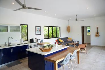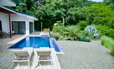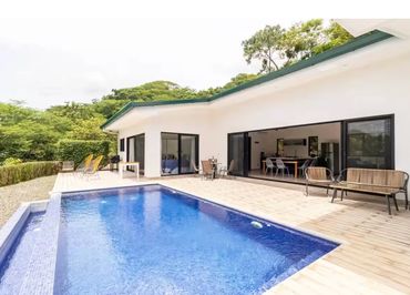 Escape to your own private jungle oasis just 15 minutes from Tamarindo, Costa Rica. This beautiful 2-bedroom, 2.5-bathroom home features 2 private bedrooms as well as a sleeper sofa. Comfortably sleeps up to 6 guests. Nestled in a gated property within a gated community, you'll enjoy total privacy and tranquility surrounded by nature. The fully stocked kitchen has everything you need to prepare meals at home, and the in-unit washer and dryer add extra convenience. There are AC units in the main house has well as both bedrooms. Step outside to your private infinity pool and soak in stunning mountain views while listening to the sounds of the jungle. Daily visits from howler monkeys, exotic birds, and other local wildlife make this a truly unique Costa Rican experience—perfect for those looking to relax, unwind, and connect with nature while staying just a short drive from the beach, restaurants, and nightlife of Tamarindo.